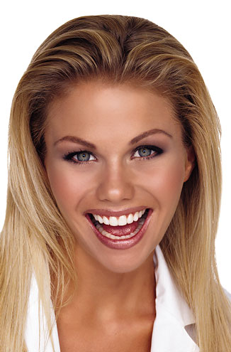 On this image I was asked to make her look younger, take out the wrinkles and pores, remove the sneer, put some color back into her face... I also created a more natural look by bringing the hair down which was unusually high, probably due to the photographer using a long lens. This shows another extreme example of how far an image can be taken.